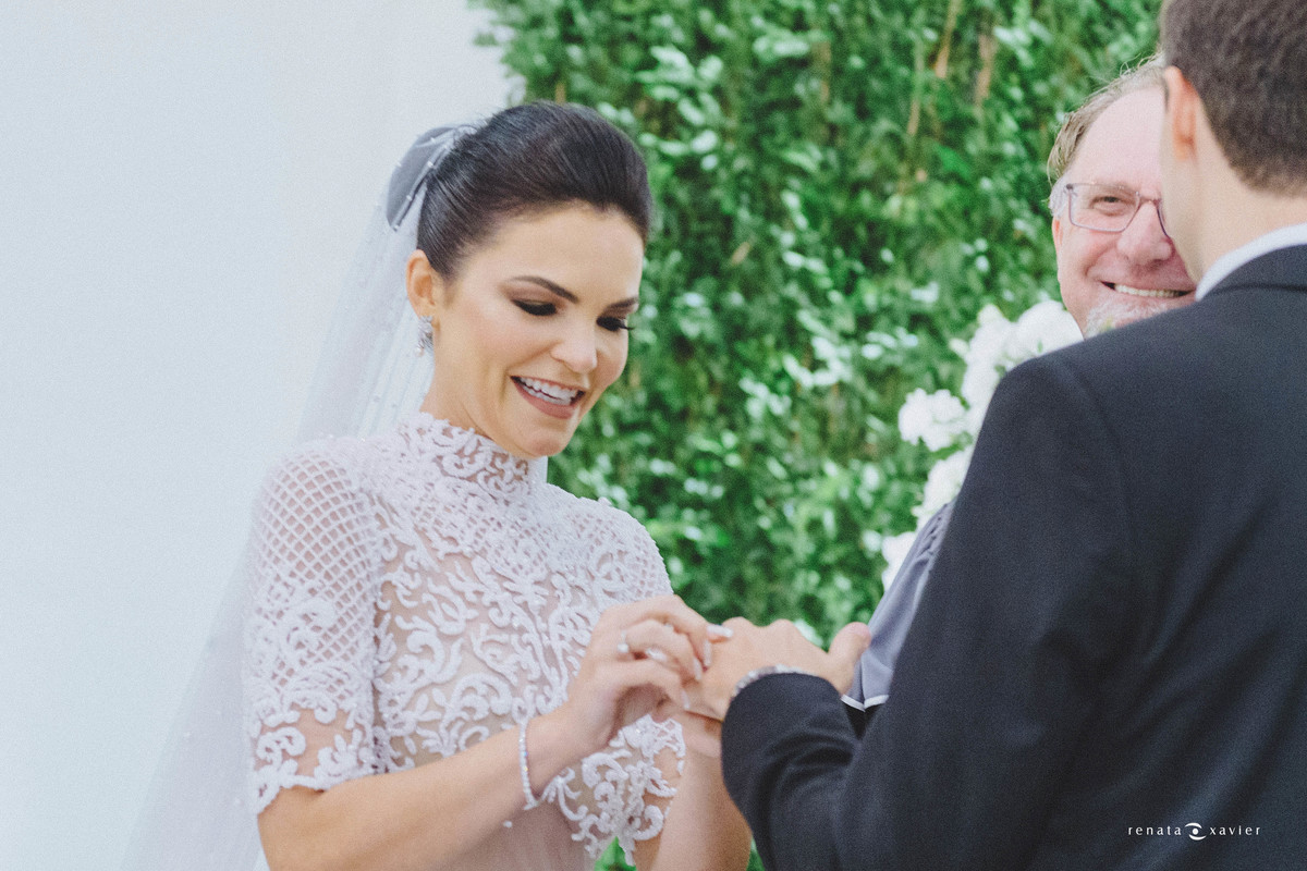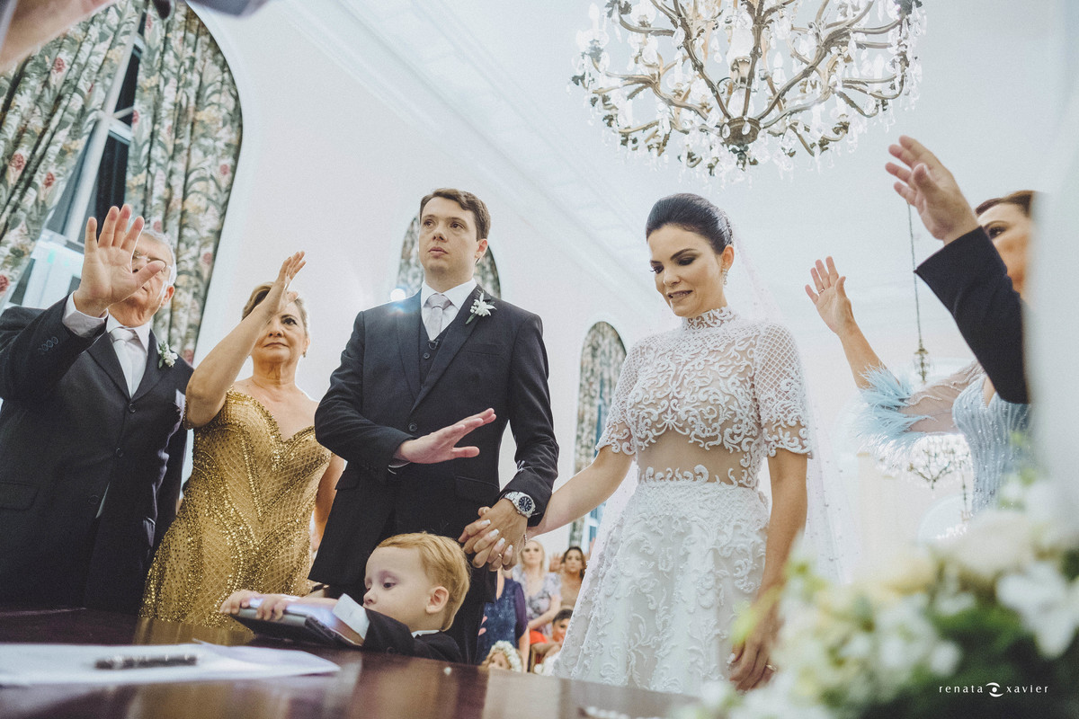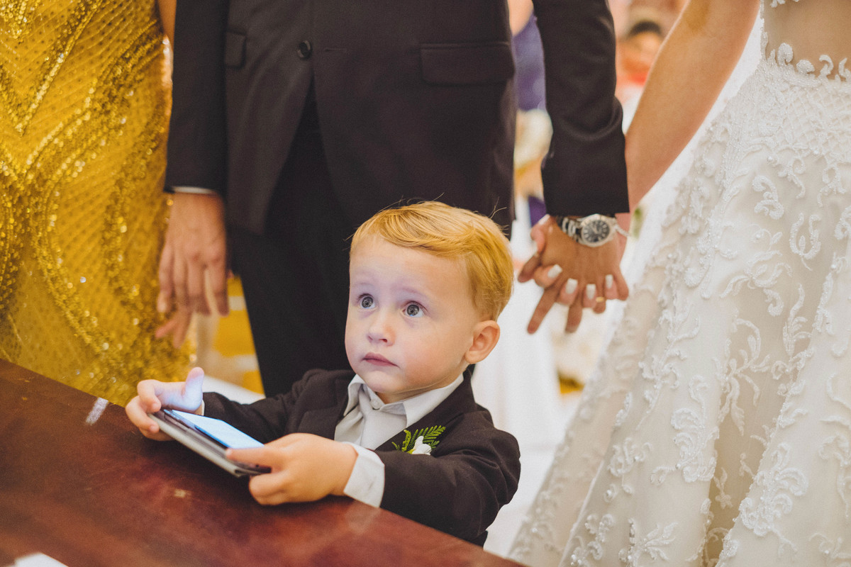Foi exatamente o momento das alianças o que mais emocionou a todos! Especialmente os noivos receberam no altar o maior símbolo da sua união e amor: Antônio, o filho dos dois com apenas 2 aninhos! Foi ele quem trouxe as alianças, a representação material do elo que os une pela eternidade. Significados que se somam, se multiplicam e tentem ao infinito assim como a felicidade que vivenciaram.